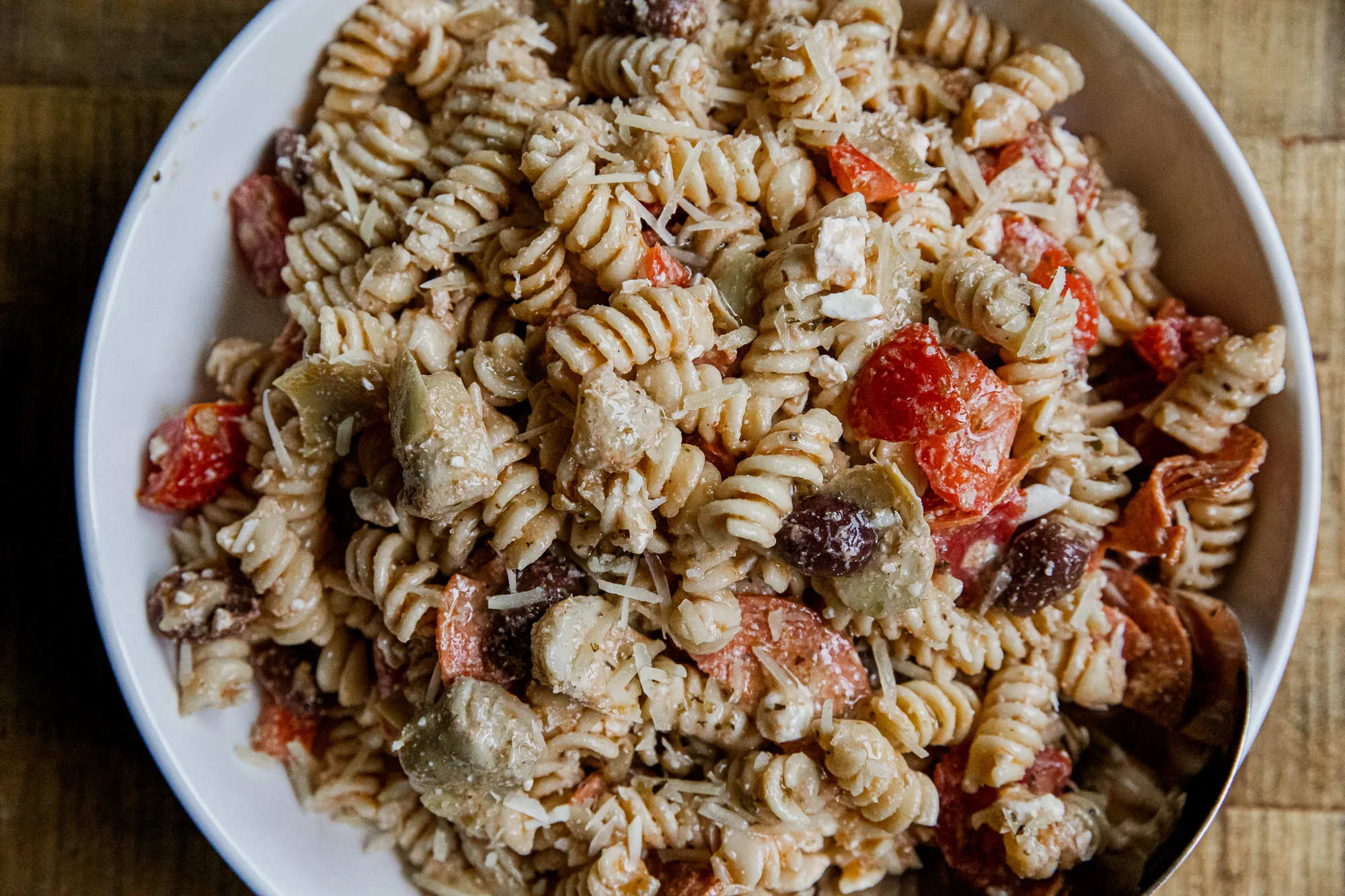 - Rotini Pasta – Its spiral shape grabs onto dressing and ingredients. Fusilli or penne work too.